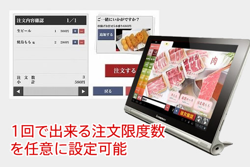1回のオーダー数を任意数に設定が出来ます。オーダーバイキング業態に便利な機能です。