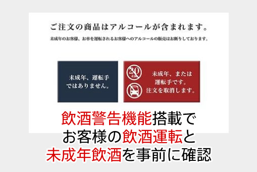 ご注文にアルコール類を含む場合、未成年または運転者でないかを確認します。