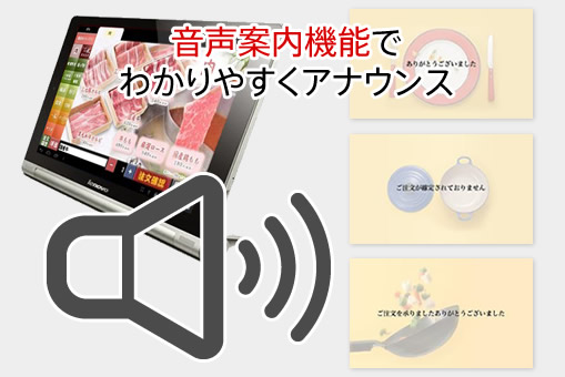 ご注文が完了していないお客様、ご注文完了後、お会計後に音声でわかりやすくアナウンスいたします。