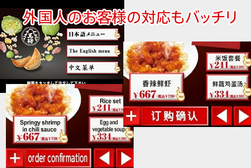 海外からのお客様もスムーズに接客ができます。「オーダーを取るのに20分」といった問題もなくなり、お客様も満足してお帰り頂いています。